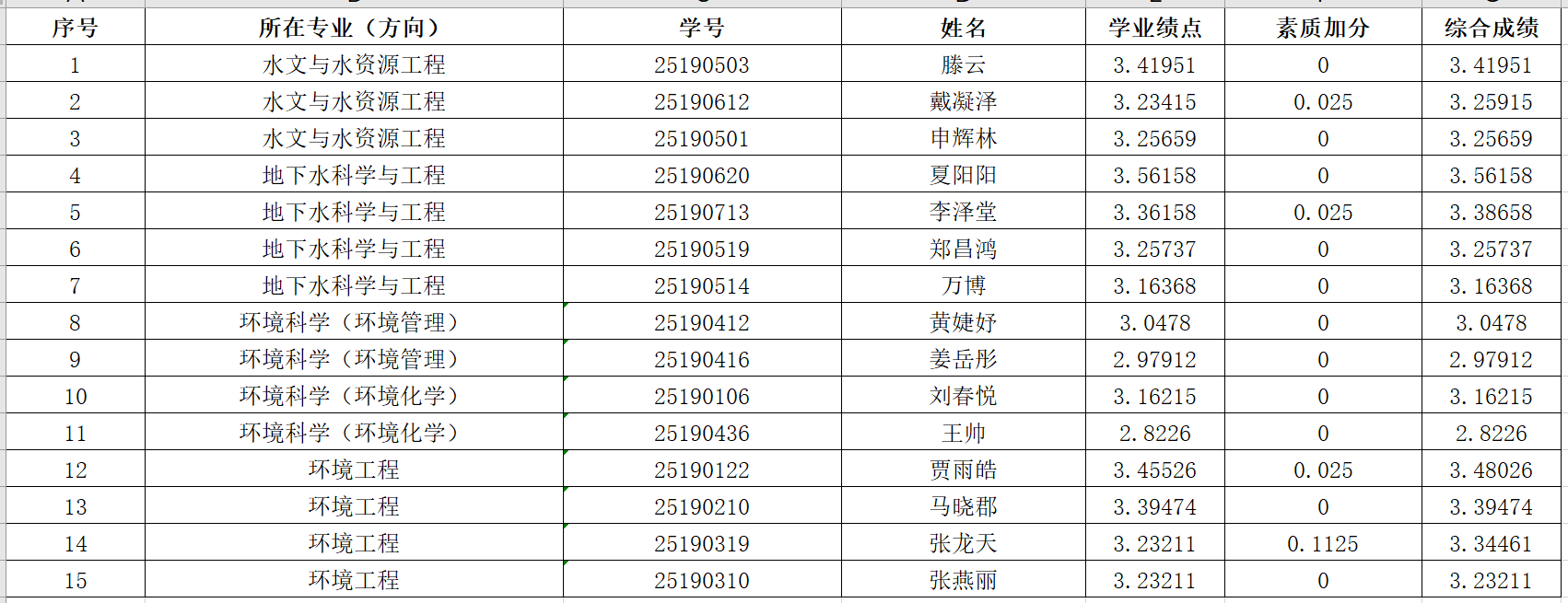 直博生申报日期已截止,经学院审核,拟推荐以下15名学生进入直博下一环节考核(附加分材料情况),特公示。