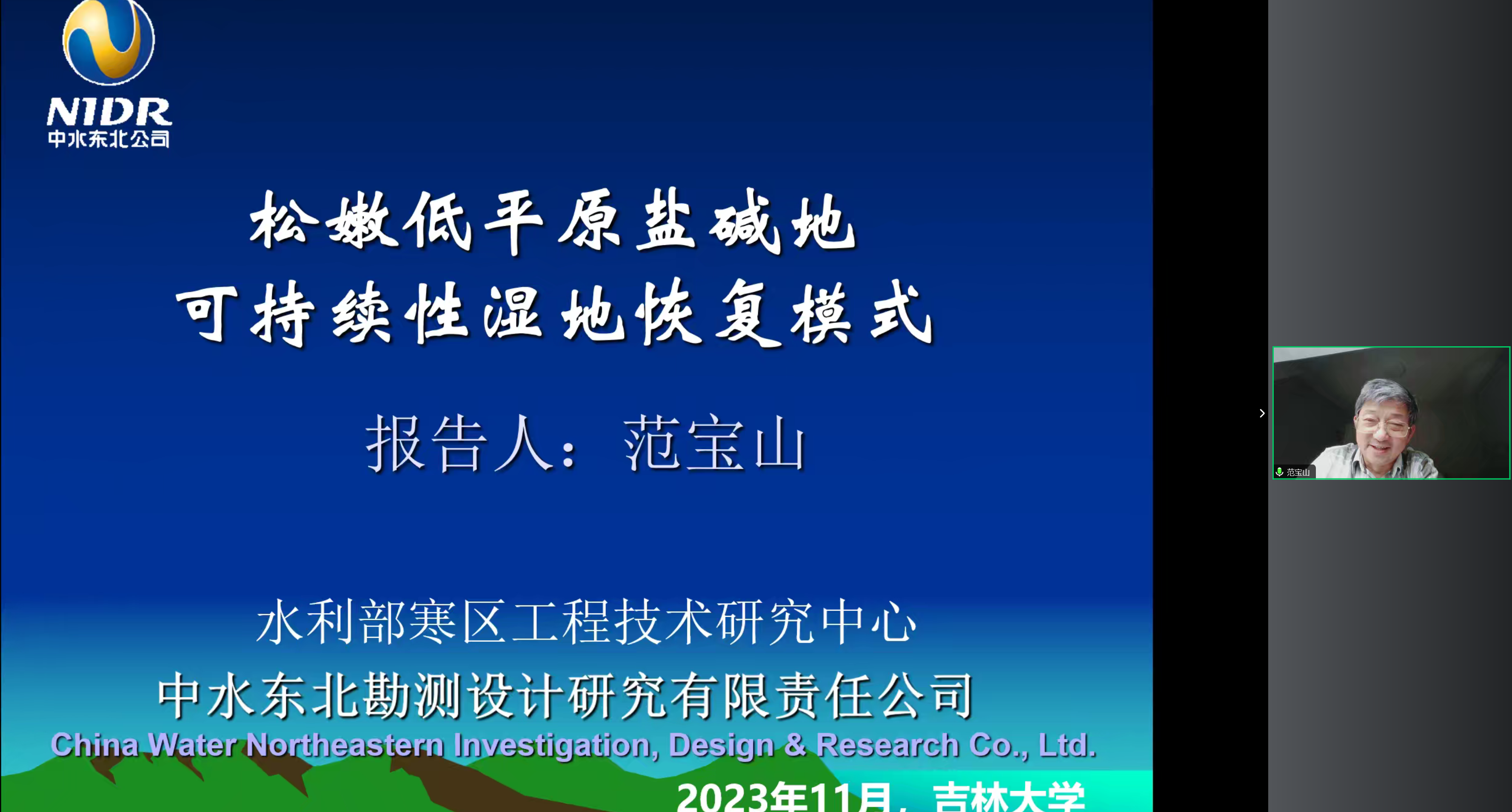 2023年11月23日,中水东北勘测设计研究有限责任公司科学研究院、水利部寒区工程技术研究中心原总工范宝山正高级工程师应邀,就“松嫩低平原盐碱地可持续性湿地恢复模式”这一主题进行了精彩的学术报告。报告会由巨乳自拍