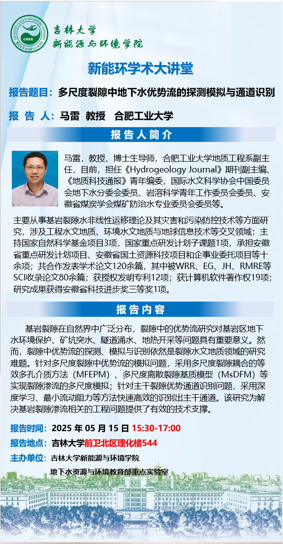 新能环学术大讲堂—多尺度裂隙中地下水优势流的探测模拟与通道识别