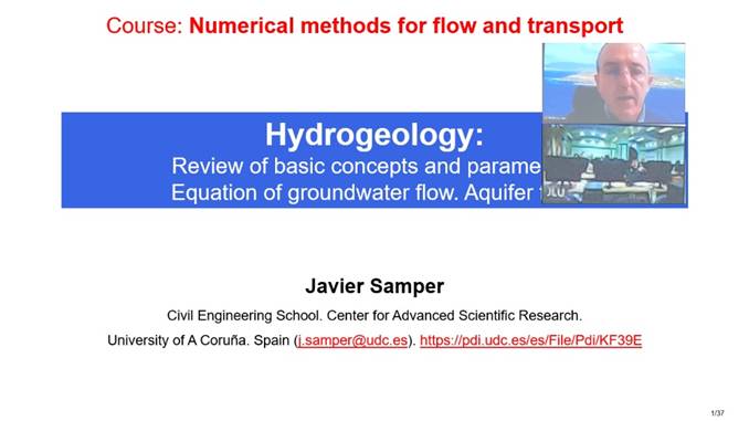 最后,Javier Samper 教授向同学们介绍了他正在进行的一项的工作,“西班牙南部冲积含水层水量均衡、地下水流动及铀迁移转化过程分析”,这项工作自80年代开始延续至今,建立的反应性溶质运移模型经历了多次校正与调整。地下多组分反应性溶质运移的模拟一直都是水文地质领域的一个难点,由于模型中众多的参数难以准确获取并在空间上具有明显的非均质性,反应性溶质运移模拟的结果精确度往往较差,通过Javier Samper 教授的介绍,让同学们意识到只要将模型进行合理的刻画,模拟结果的准确度能够得到显著提高。同时,Javier Samper 教授在这项工作中展现出不断探索,认真严谨的科研态度也让全体同学受益匪浅。