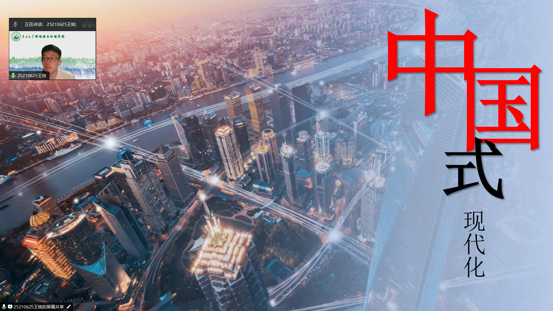 看过视频后,王铭同学为同学们讲解了何为“现代化”,“现代化”这一概念发源于西方,是指社会从农业社会向工业社会转变的历史过程。现代化的概念虽从西方舶来,但不是颠扑不破的真理。我国在进行现代化探索的过程中,既学习西方现代化的先进做法和新鲜经验,又结合我国发展的具体实际,打破了“现代化=西方化”的迷思,逐步走出一条不同于西方模式的、适合中国国情的中国式现代化道路。