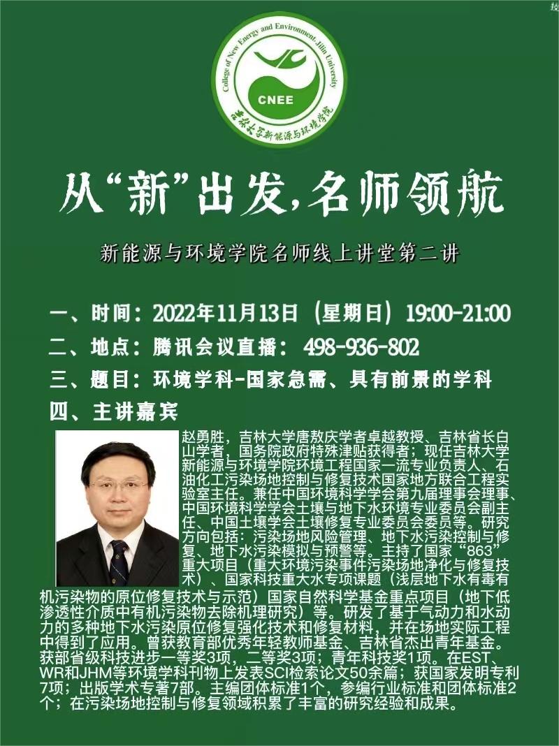 名师线上讲堂第二讲邀请到了赵勇胜教授给同学们授课:“环境学科——国家急需、具有前景的学科”。