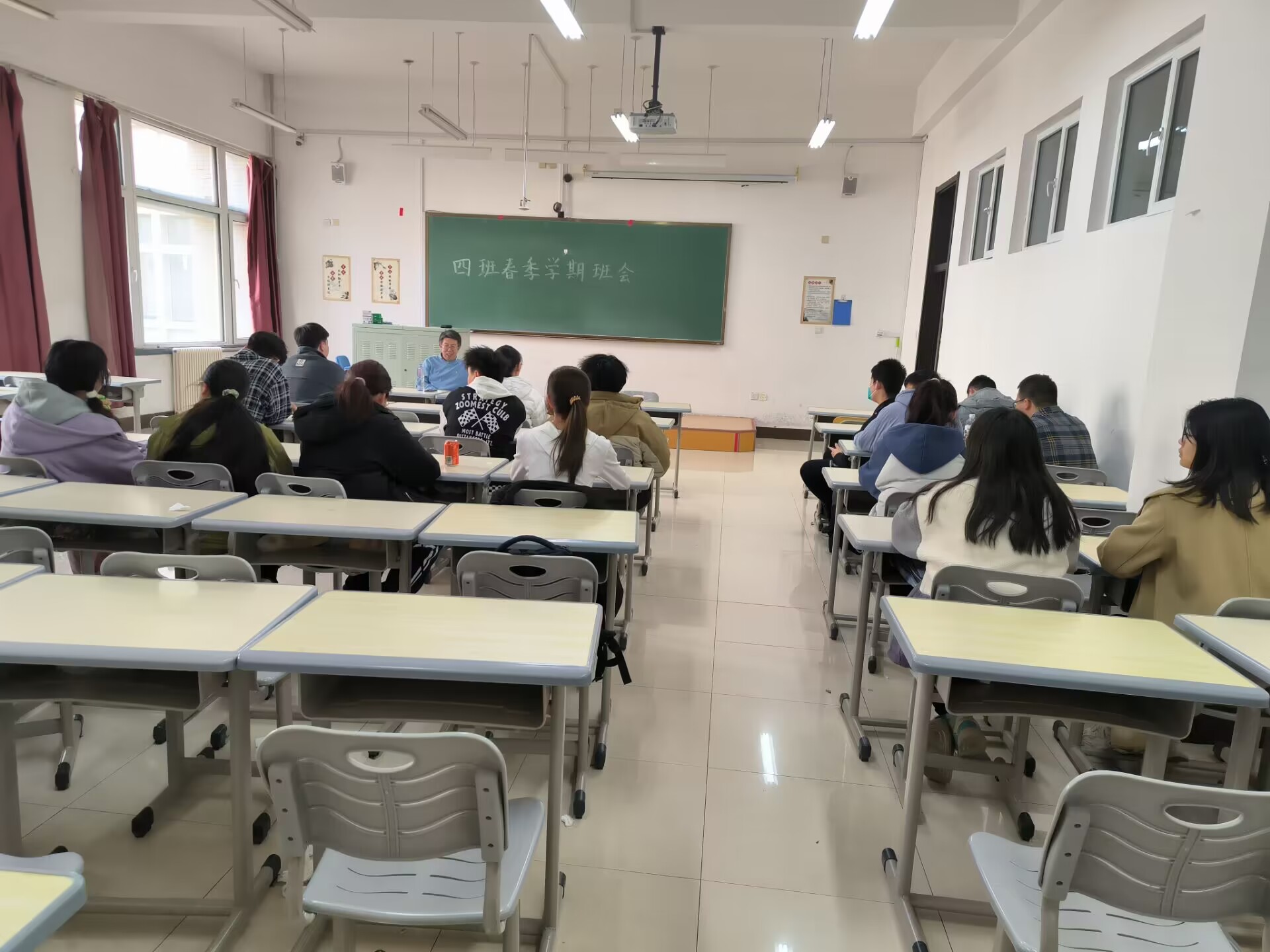 252124班在班主任张大奕老师和老师的带领下,召开了以“新学期,新气象”为主题的主题班会,班主任张大奕老师、迟子芳老师和四班全体同学参加了本次班会。
