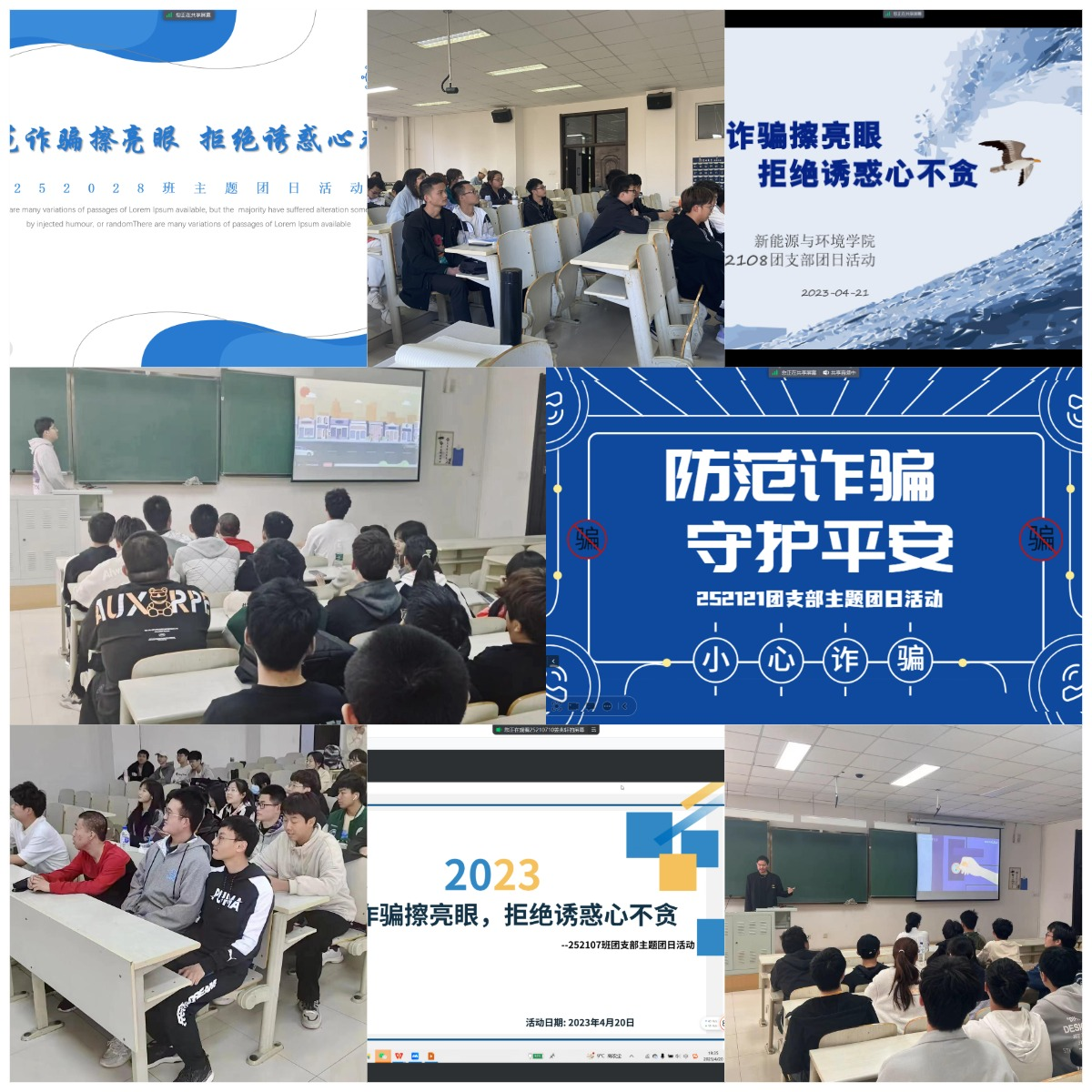 本次活动中,各团支部通过观看反诈宣传视频,让同学们了解什么是诈骗、如何防骗。其中,252023班团支书甘宇娟同学利用视频中的典型案例向同学们分析各类诈骗的主要表现形式、诈骗手段及其危害,让同学们熟悉了生活中常见的诈骗形式,掌握基本的防骗手段,并宣传有关防诈骗的法律知识,讲解被诈骗后应该怎么办。