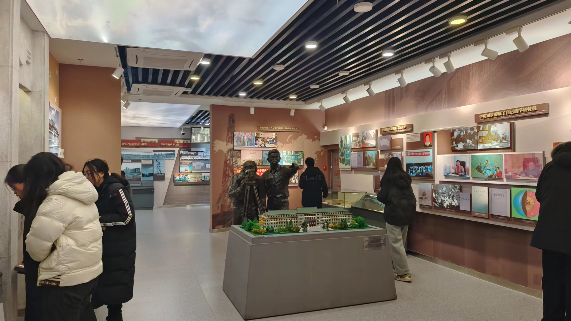一张张照片记录着学校的演变与发展,感受到了曾经的风华与奋斗的坚韧。通过讲解员的讲解,同学们更深入了解了吉大走过的峥嵘岁月,感受到前辈们对学术的执着,勇攀科学高峰的决心,以及对人文精神的追求。