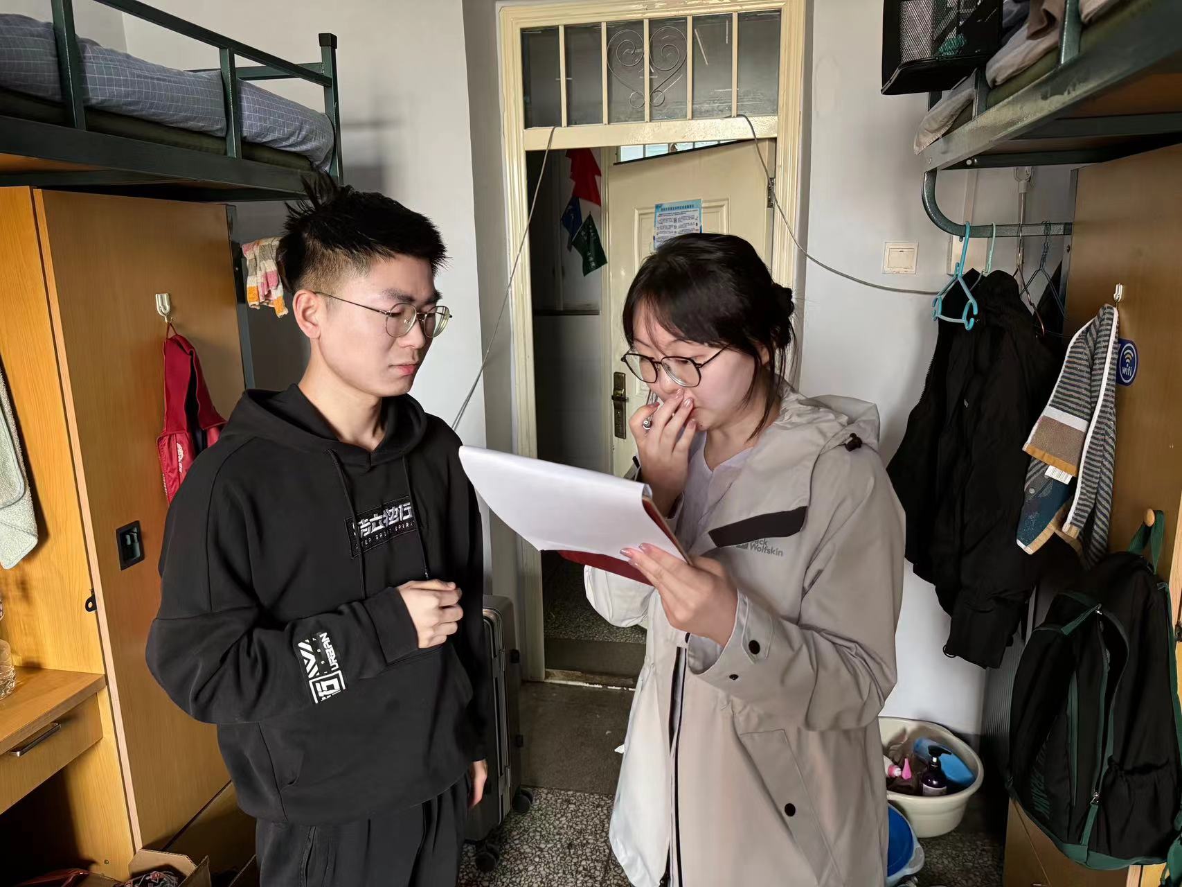 朝阳校区五公寓、七公寓42间寝室进行检查,提醒同学们注意寝室卫生,了解同学们毕业去向等情况,强调寝室安全。