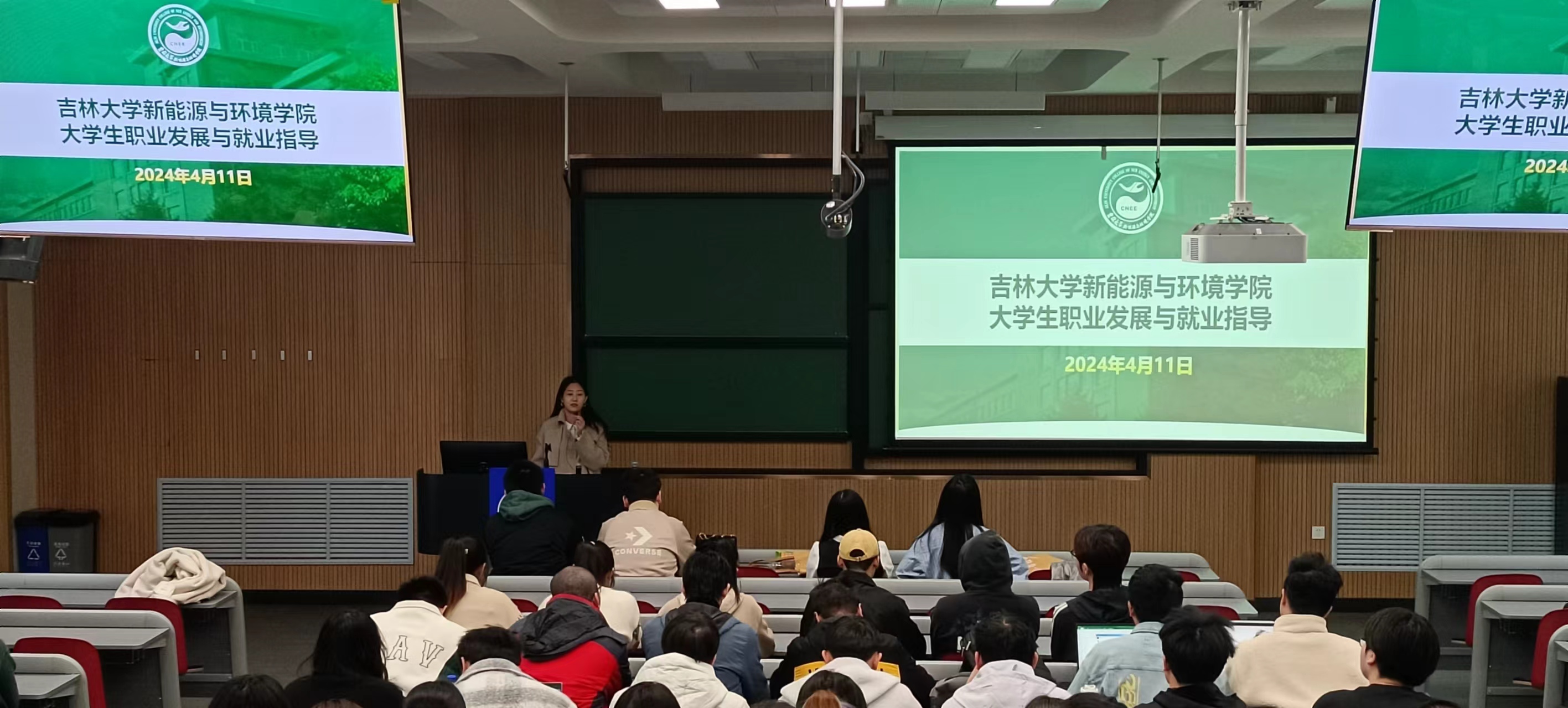 在朝阳校区实验楼200教室举办了“同新协力 学长护航”大学生职业发展与就业创业指导专题讲座,朝阳校区2021级全体本科生参与本次活动,辅导员李薇老师担任主持人.
