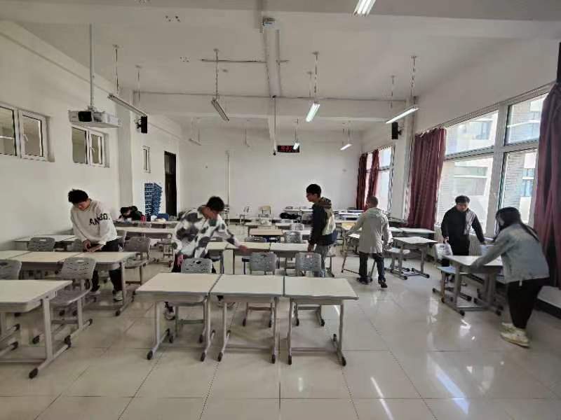 活动当天,同学们按照事先分工,在李四光教学楼的各个教室内开始了桌椅摆放的工作。有的同学负责搬运桌子,有的同学负责摆放椅子,有的同学负责清理地面。大家分工合作,井然有序地开展工作,相互配合,完成了教室内桌椅的重新摆放任务。整个活动过程中,每位同学都积极主动,充满热情,展现出了良好的团队合作精神。