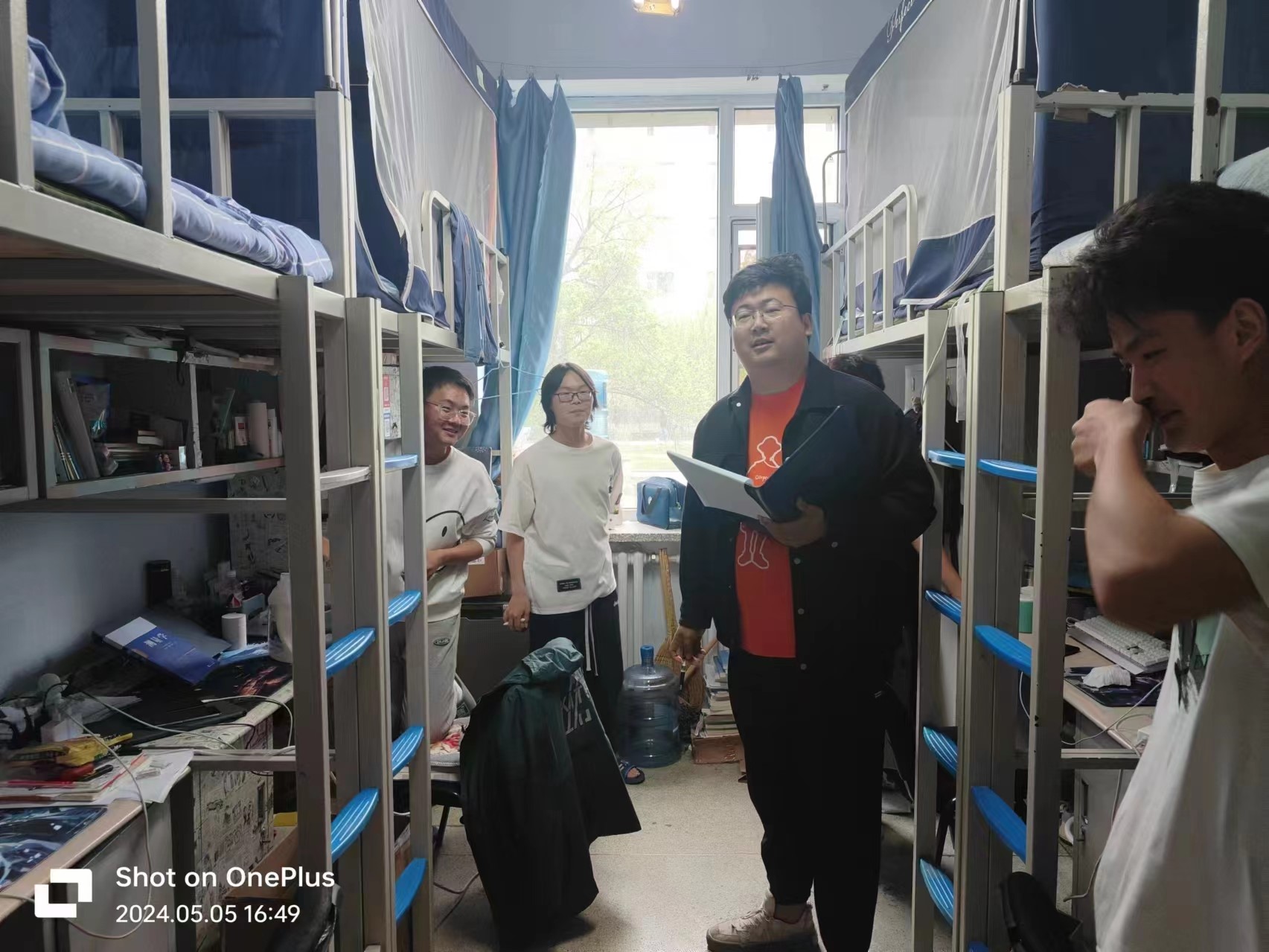 5月5日晚,2022级辅导员母茂松老师对中心校区62间学生寝室进行走访,了解学生假期后返校情况,及宿舍卫生情况,对假期后的课堂出勤情况做出提醒。9日,母老师深入环境工程专业限选课《生态学基础》课堂,同任课老师沟通签到情况。本次课程1人因事请假,2人病假,2人迟到,其余同学均按时到课。