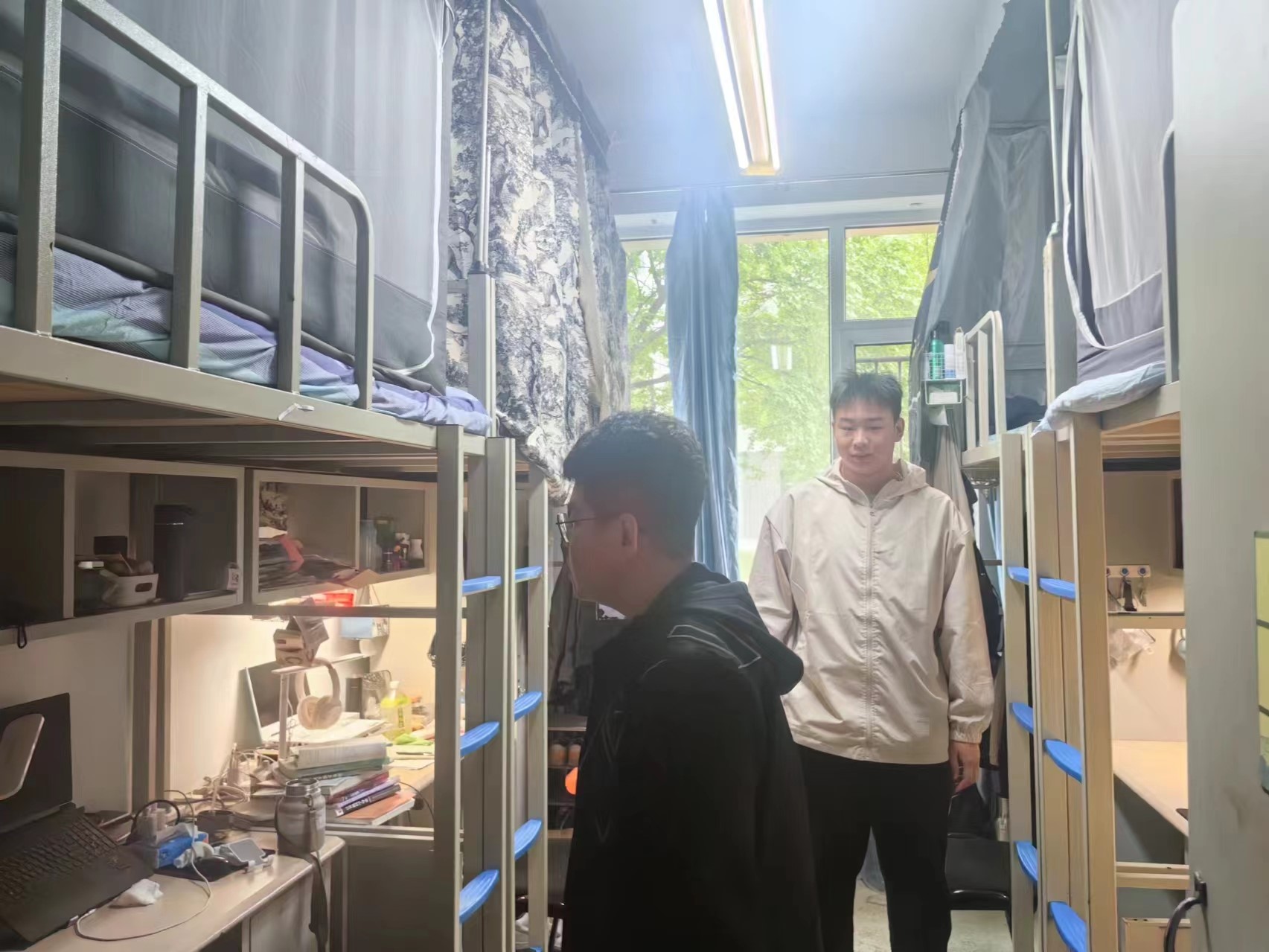 5月15日,2022级辅导员母茂松老师对中心校区学生寝室进行了卫生检查。母老师督促同学们尽快清理垃圾,避免气温回升产生异味,滋生细菌,保持寝室卫生整洁,营造良好生活环境。