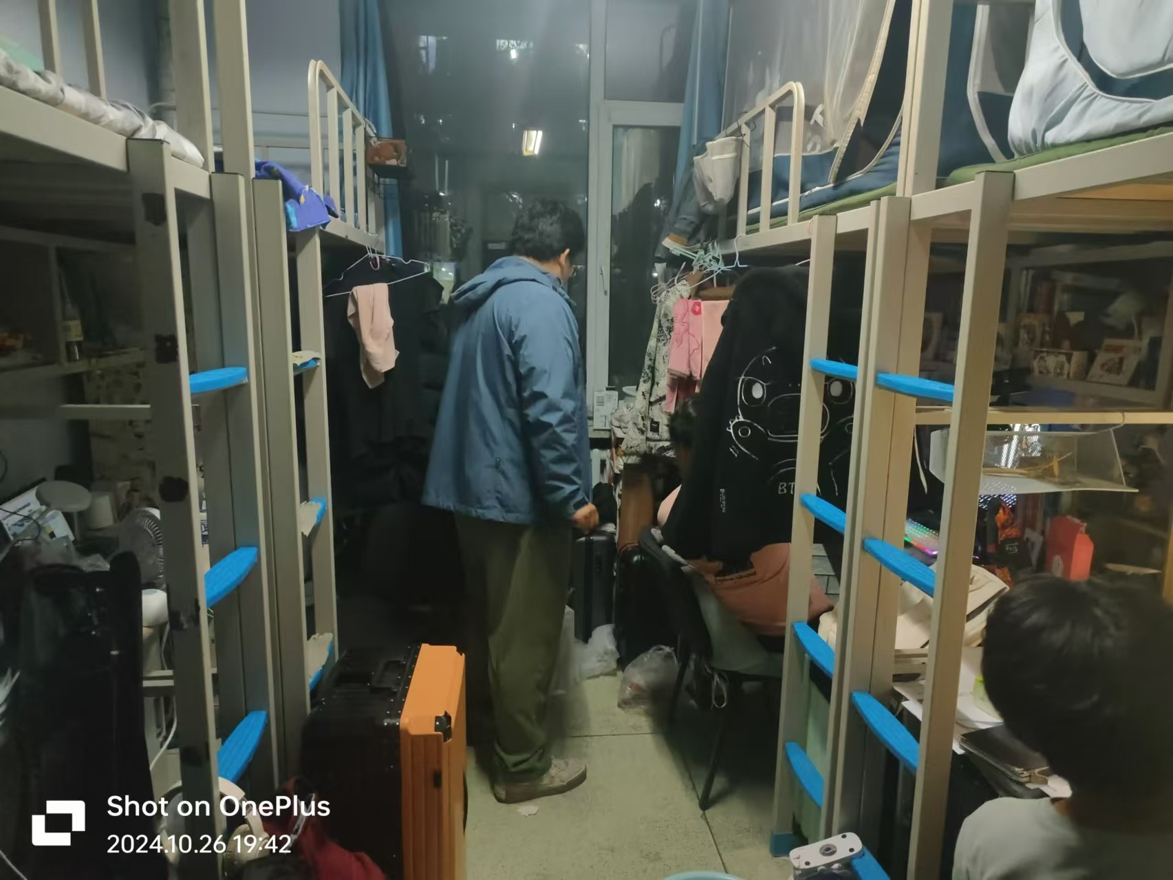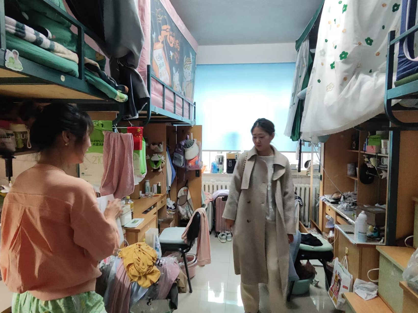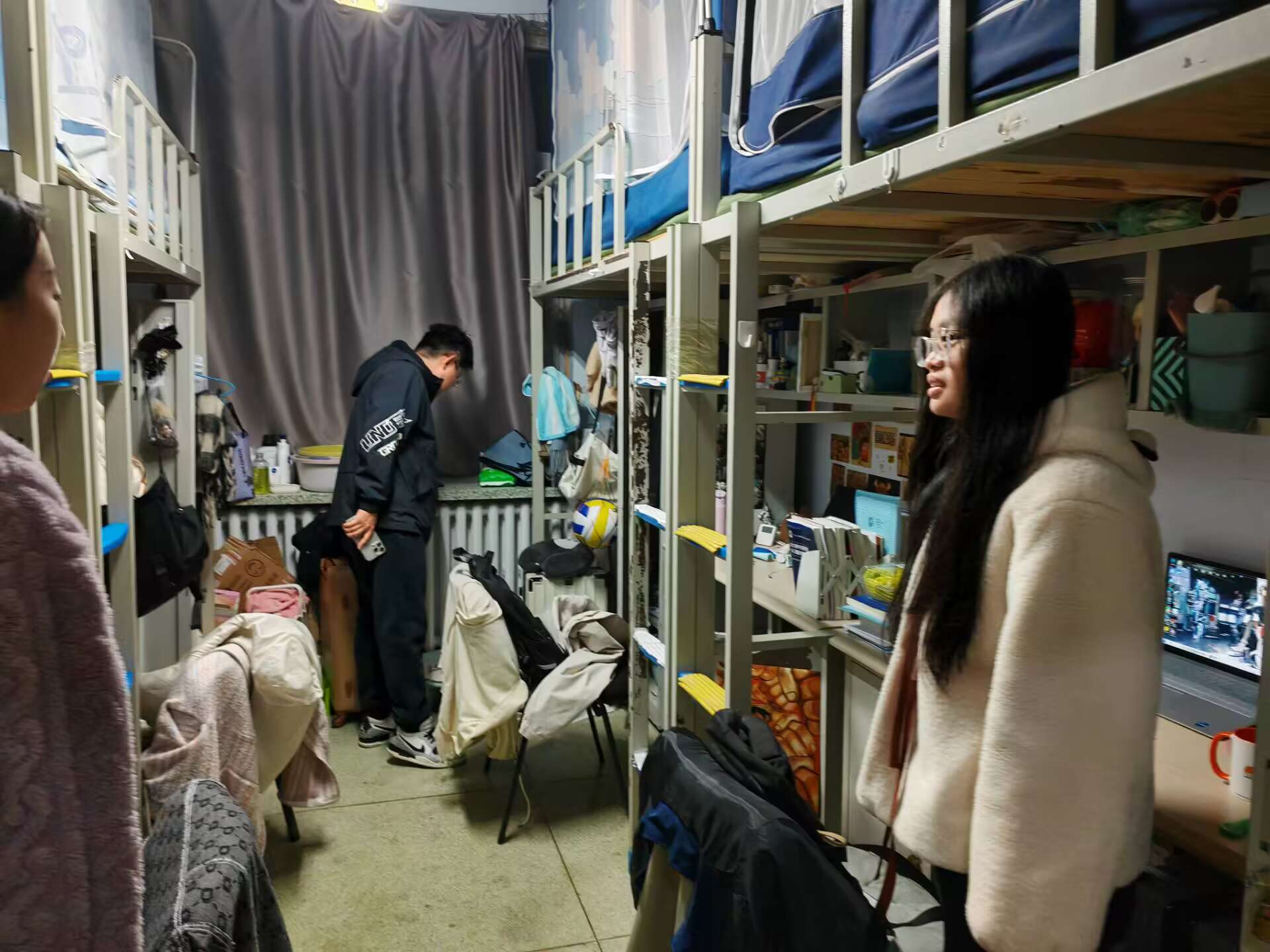 10月23日,2023级辅导员姜岳彤老师进入南苑二公寓寝室,了解学生宿舍温度情况,并对违章电器进行检查。姜老师提醒学生关注室内温度,及时反馈,便于校方维修。同日,姜老师走进《马克思主义基本原理》课堂,检查学生到课及前排就坐情况,本次课程共1人请假。