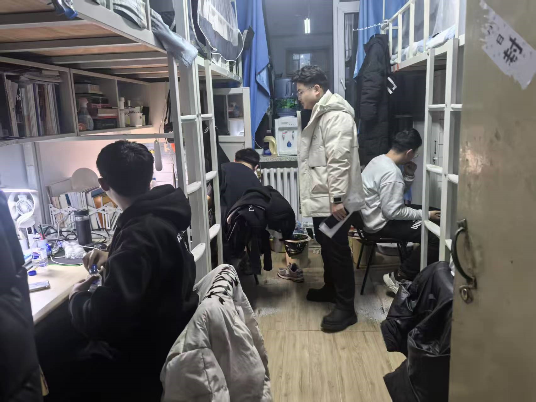 3月6日,2024级新生辅导员助理姜兆轩进入南苑一公寓,检查寝室卫生,提醒同学们新学期要认真上课保证出勤,同时提醒计划转专业学生也不能因备考复习而影响正常课程安排。
