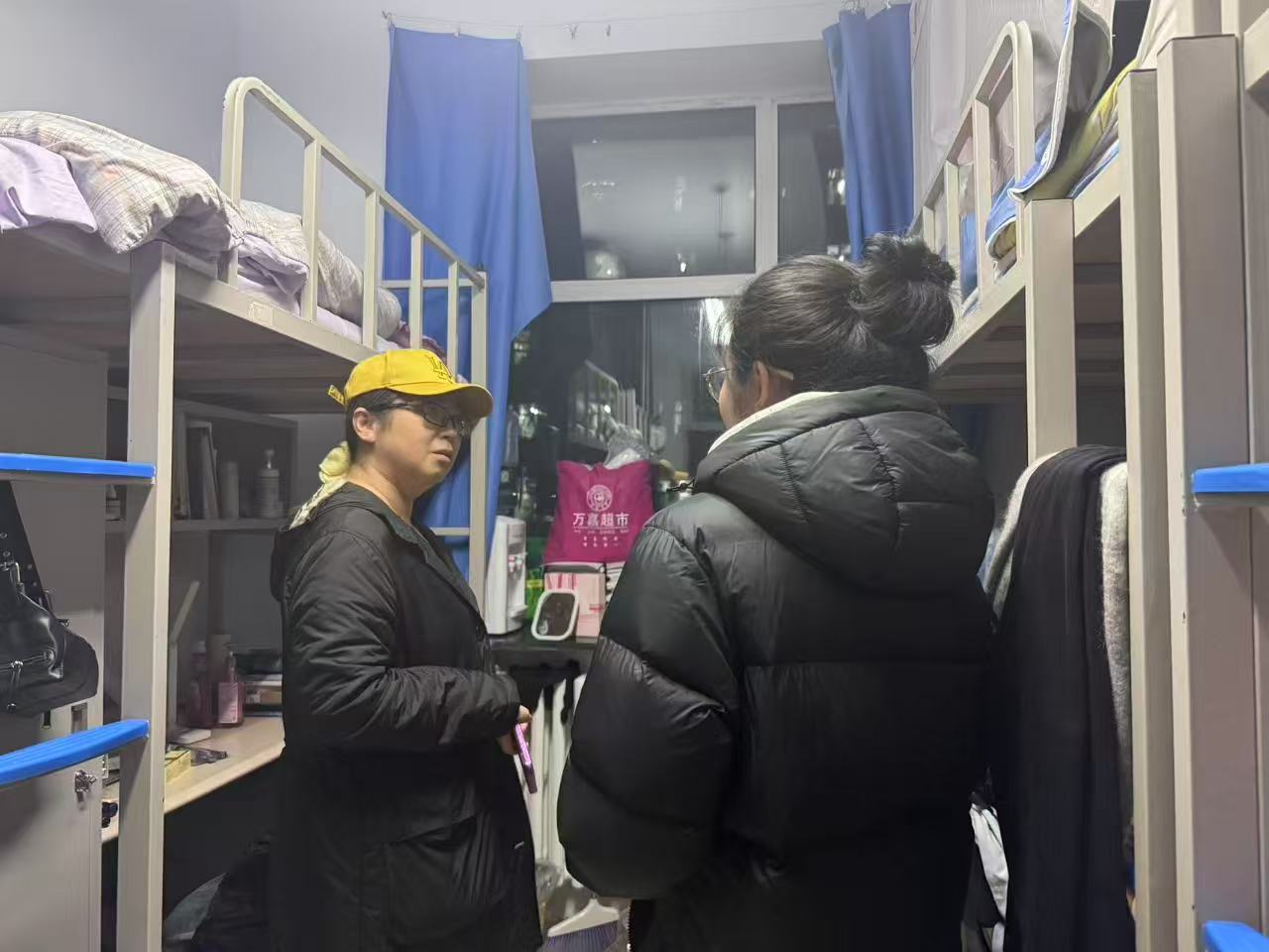 4月3日,2021级辅导员李薇老师进入南苑一公寓和二公寓检查寝室卫生情况和消防安全情况。走寝过程中,李老师进一步了解了学生就业情况,根据学生就业偏好为其推荐相关企业。