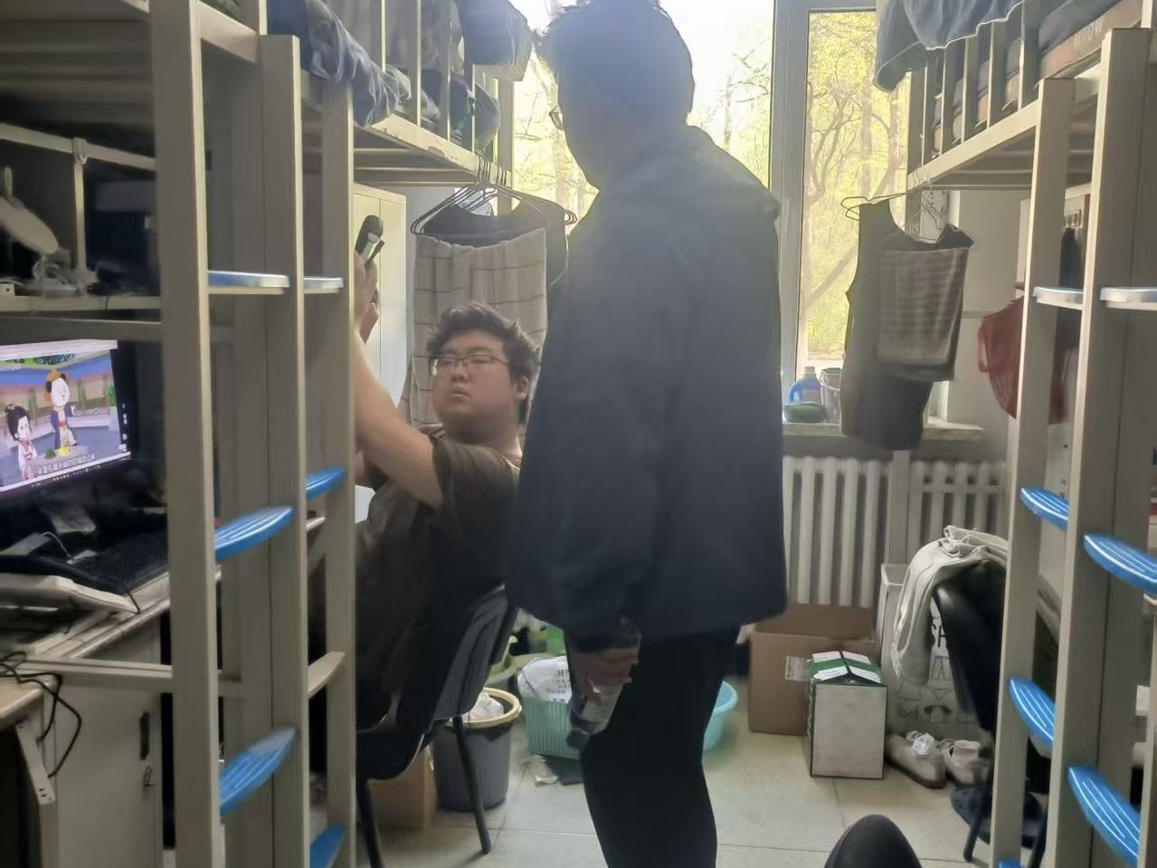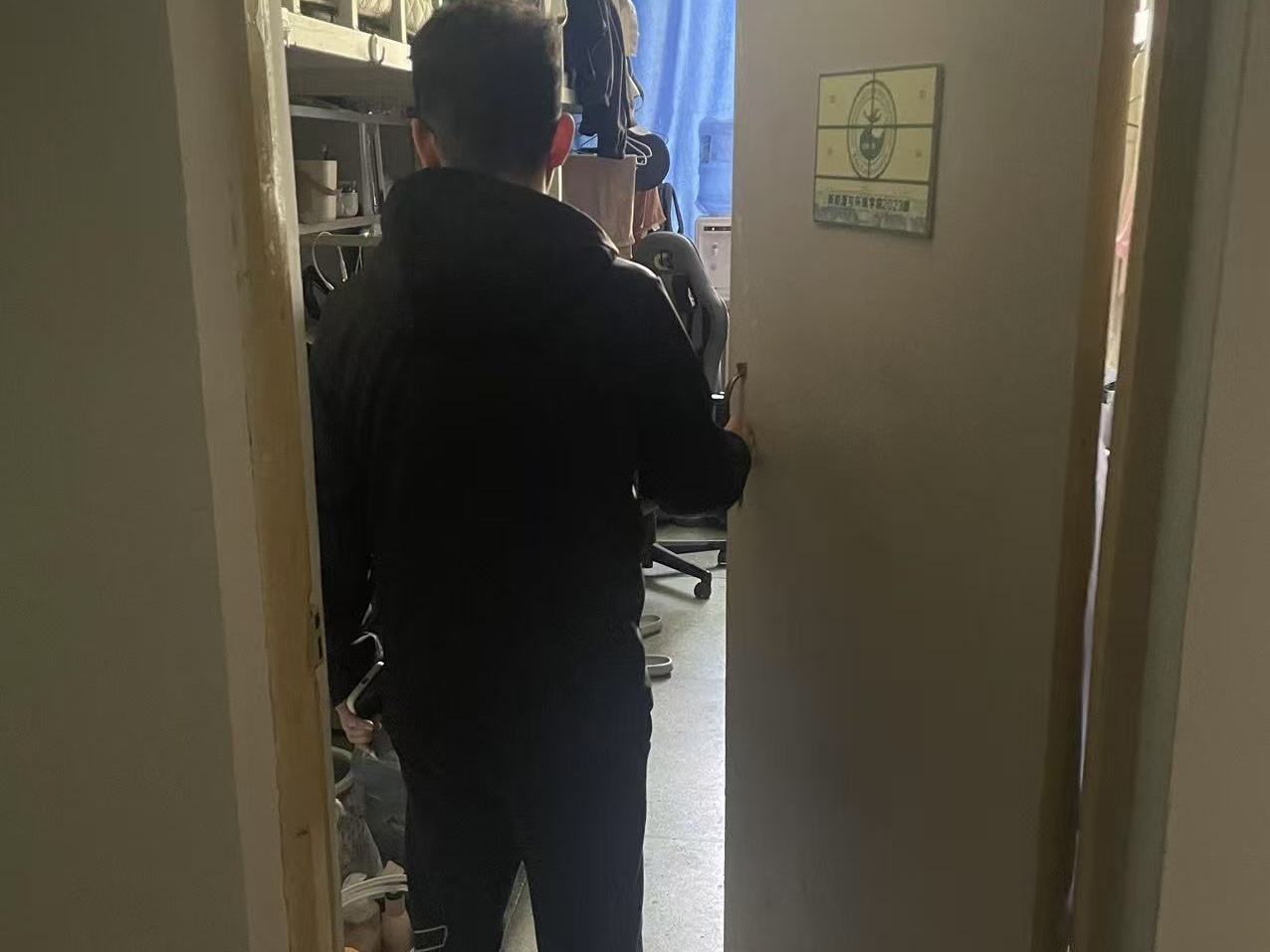 5月11日,2022级辅导员母茂松老师进入南苑一公寓学生寝室,检查宿舍卫生情况,并提醒学生关注自身学习情况,掌握未通过课程情况。