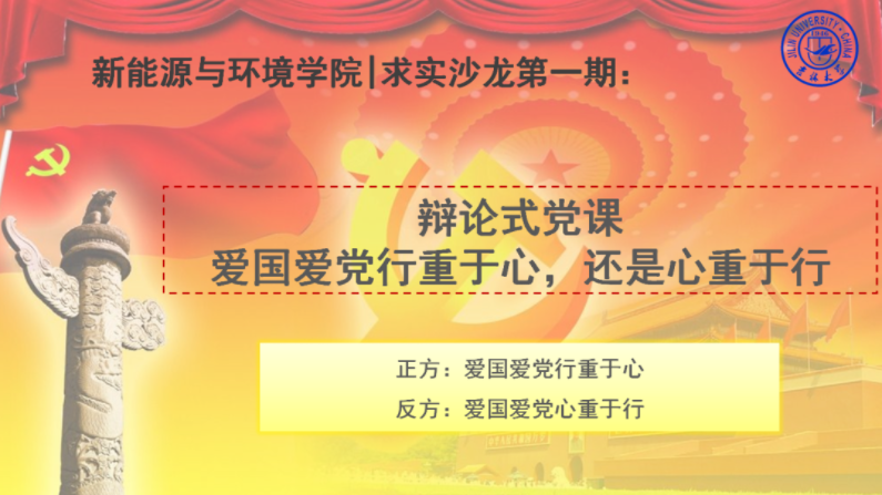 开展庆祝建党100周年“求实”沙龙第1期:辩论式党课“爱国爱党行重于心,还是心重于行”的研究生活动。