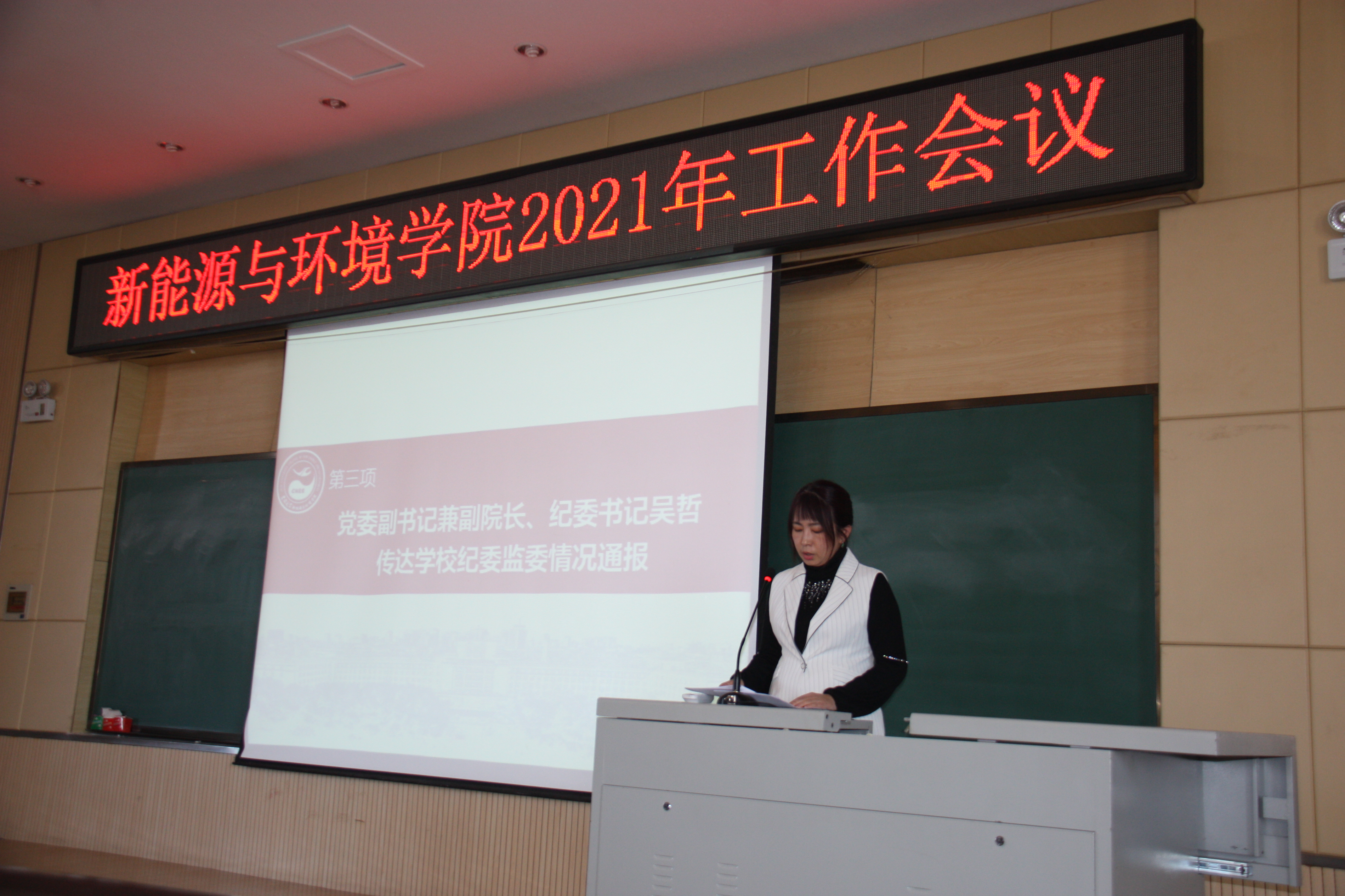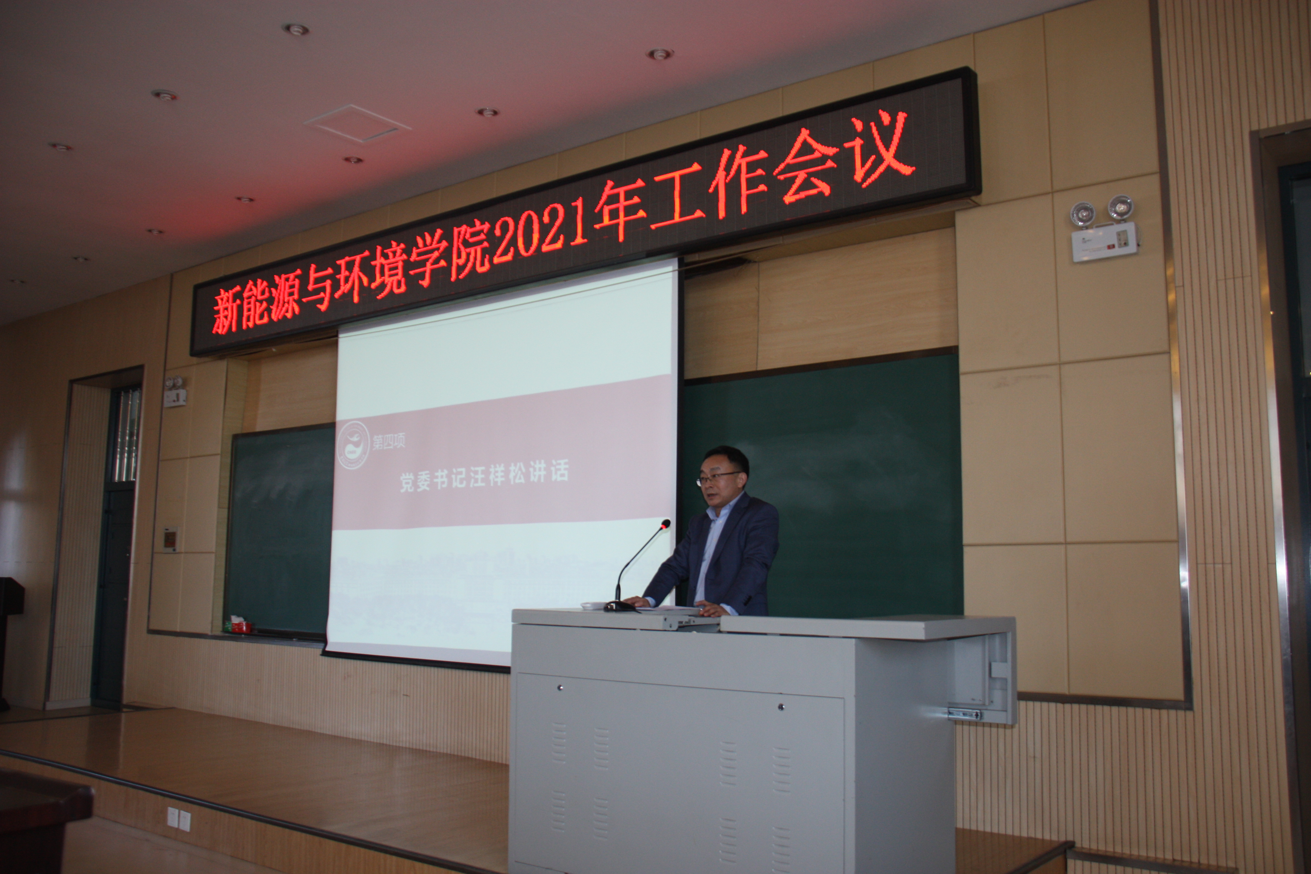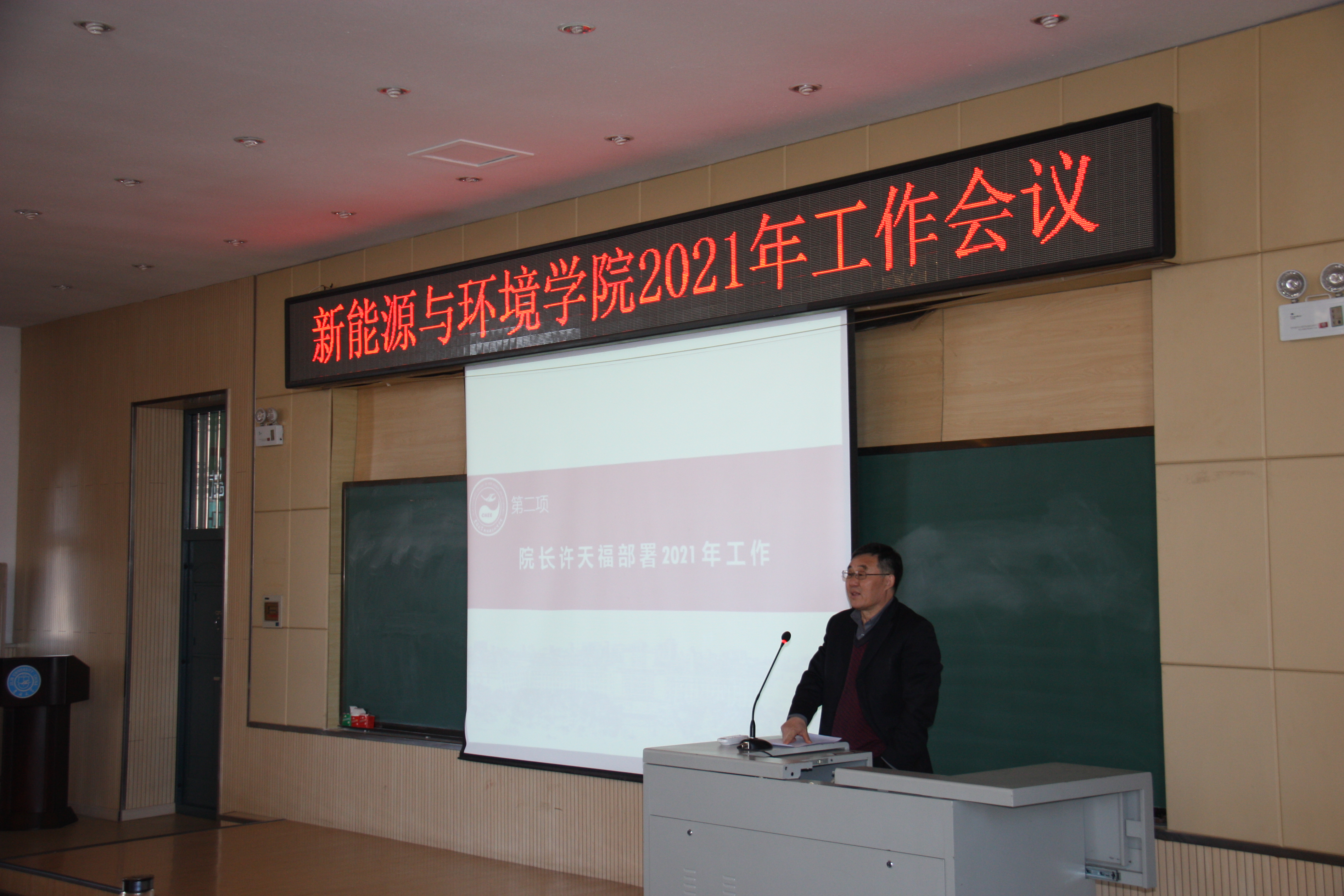 2021年度学院工作会议在北区理化楼一阶报告厅召开。学院党政领导、全体教职工参加了会议,院长许天福做了院长工作报告,会议由学院党委书记汪祥松主持。