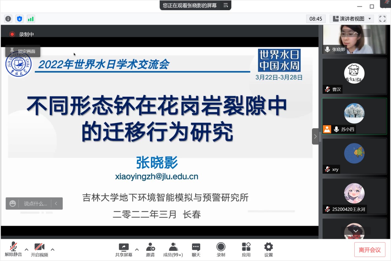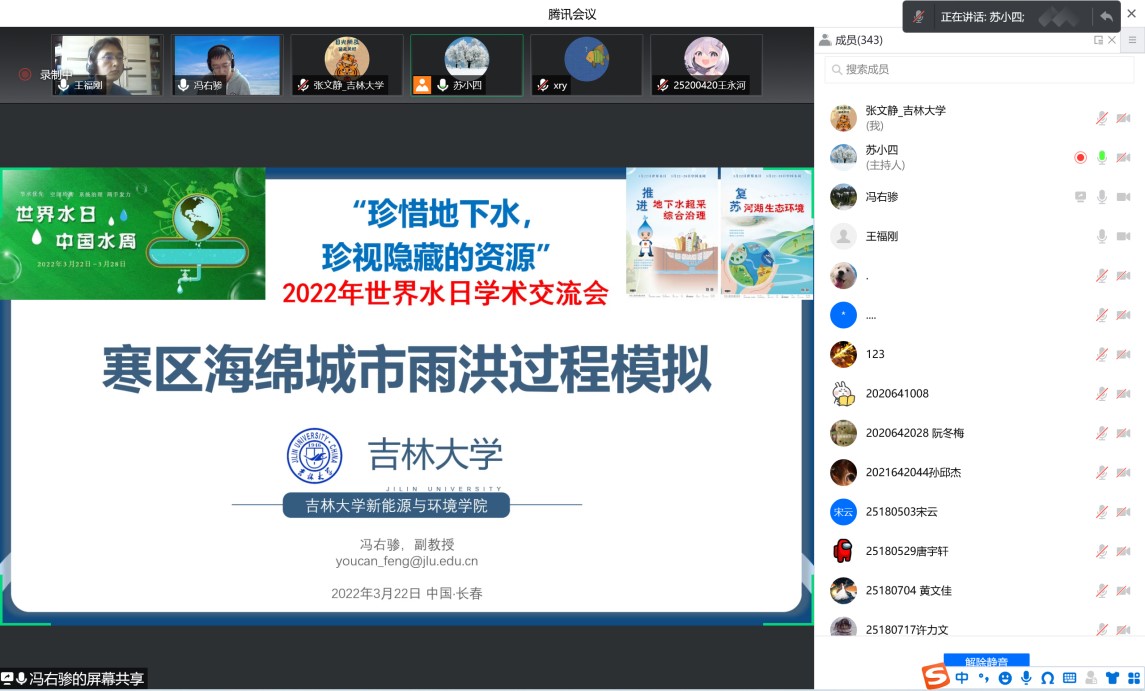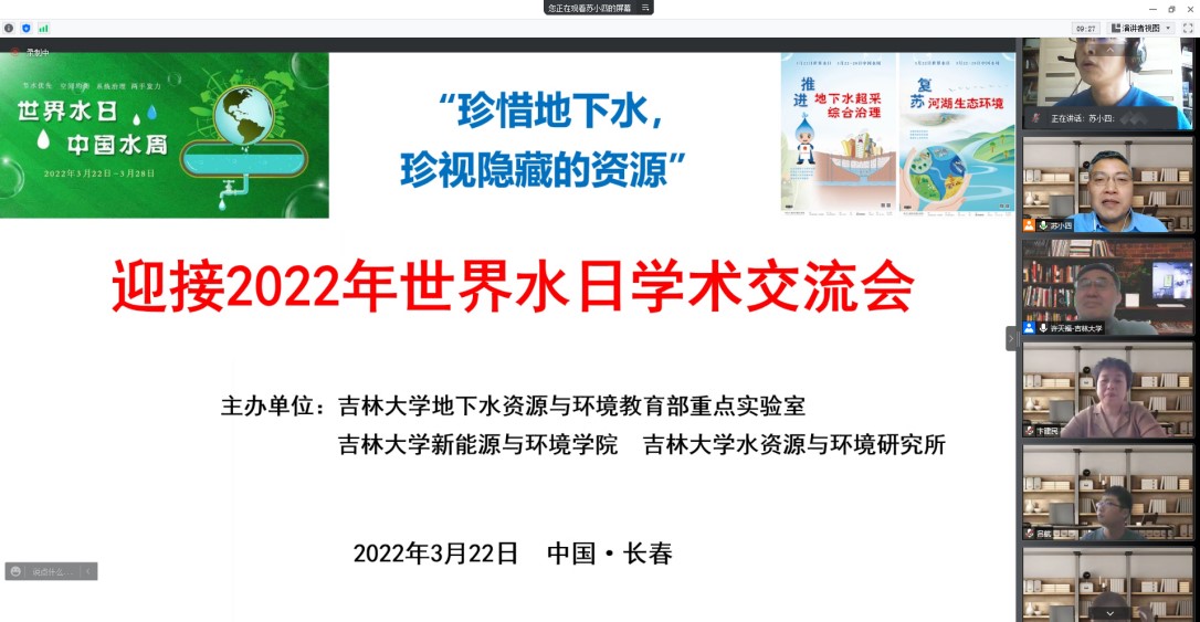 、水资源与环境研究所与地下水资源与环境教育部重点实验室共同组织召开了迎接2022年世界水日学术交流会。会议由水资源与环境研究所所长苏小四教授主持,学院领导、相关教师和研究生、本科生同学350余人在线参加了此次学术交流。
