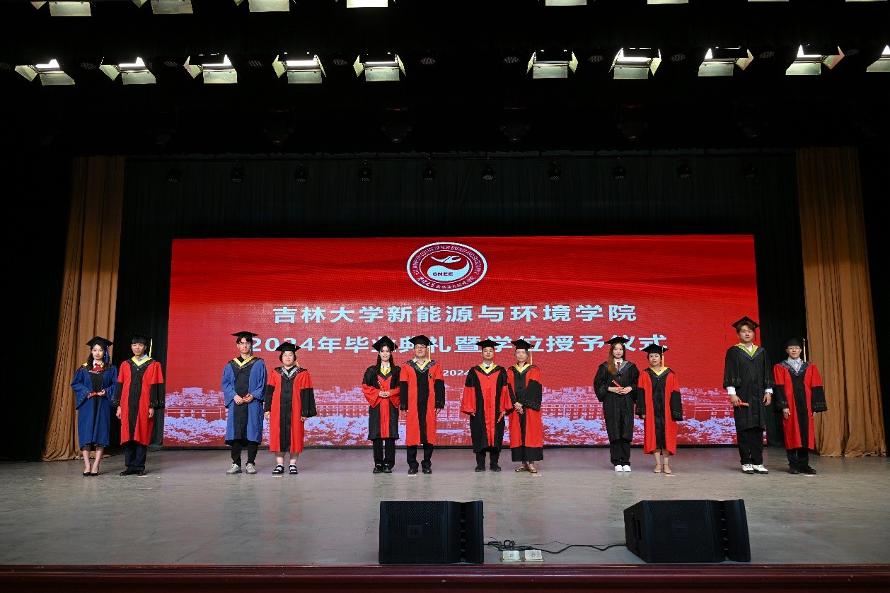 关于授予2024届毕业生学位的决定》,主礼教授许天福教授、李鸿雁教授、郑娜教授、卞建民教授、花修艺教授、董军教授为319名毕业生授予学位、拨动流苏。学位授予仪式后,毕业生代表为优秀毕业论文指导教师献花,感谢老师们的辛勤付出。副院长徐军为2024届校友年级理事颁发聘书,呼吁校友们持续关注学校和学院发展,为母校建设建言献策。