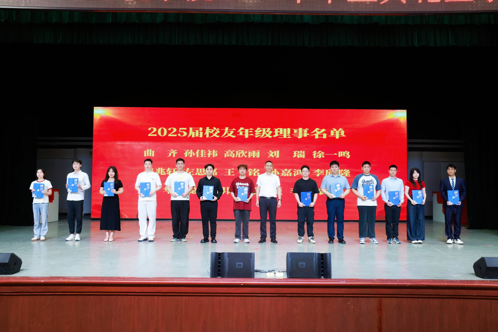 典礼聘任曲齐等 13 名毕业生担任 2025 届校友年级理事,副院长徐军为他们颁发聘书,并呼吁校友们持续关注学校和学院发展,为母校建设建言献策。