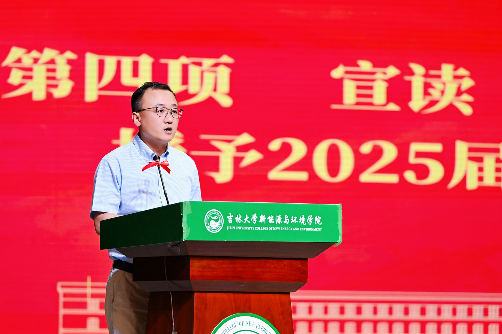 副院长秦传玉宣读《关于授予2025届毕业生博士、硕士学位的决定》,副院长辛欣宣读《关于授予2025届毕业生学士学位的决定》,本届学院共有22名博士研究生、110名硕士研究生和162名本科生顺利毕业。