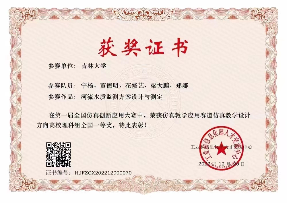 优秀基层教学组织;“河流水质监测方案设计与测定”获全国仿真创新应用大赛一等奖“包气带与饱和带渗流运动模拟”获全国仿真创新应用大赛吉林省赛二等奖;获批学校规划建设教材立项4部,出版规划教材2部;获批吉林省高教科研课题1项,巨乳自拍
