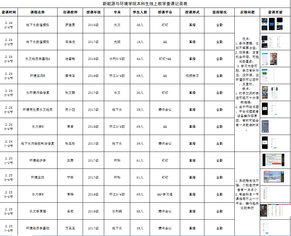 2月24日,学院的在线教学如期开课,学院班子成员以及学生工作办公室全体辅导员深入学院每一个网络课堂,在QQ、钉钉、腾讯会议3个平台全天各时段进行网络查课,共计查课13节,顺利完成教学检查任务。及时联络学生,保证全勤出席,密切关注学生在线学习情况及上课质量。课后与学生交流了在线上课的体验,很多同学对于这种新颖、高效、有针对性学习方式的点赞,比如:“条件便捷,不需要占座”“学习模式和生活模式转换效率高”“可以暂停记笔记,互动效果很好”“最喜欢的就是老师们录制的视频了,可以反复观看,哪里没听清能有处可寻,交给我们的资料更多了。我觉得更加便于交流,每位同学的发言机会平等,与老师沟通的战线拉长了”。当然,也存在一些问题:“打字没有线下表述问题那么清楚”“会有点浪费时间,QQ电话可能也会有bug加不进去”“有的科目一节课得用不止一个平台,操作起来比较麻烦”。学生工作办公室对学生网络学习的感受和建议进行了汇总,并及时向教学工作办公室反馈。