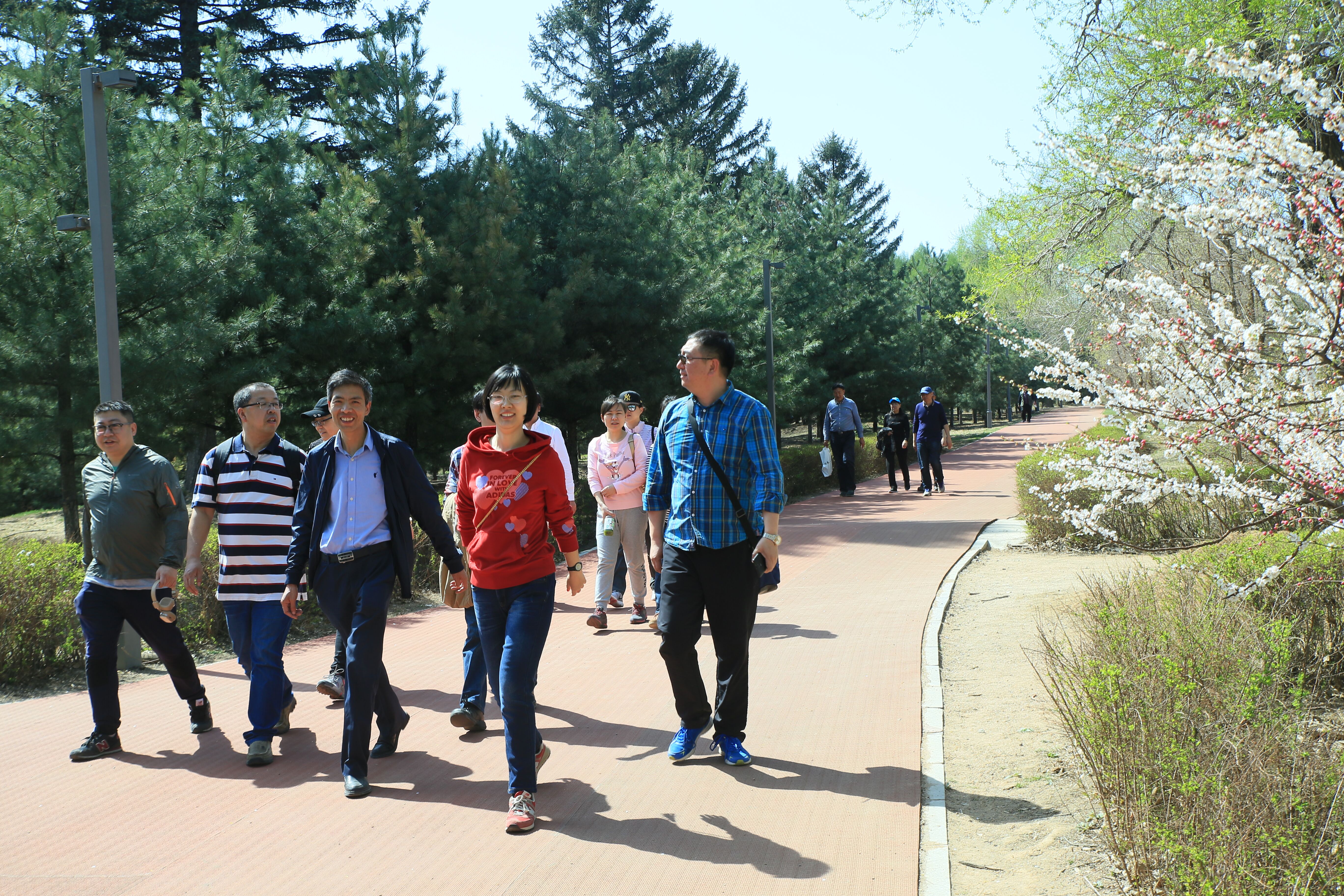徒步活动从南湖西门出发,绕行整个南湖。大家精神饱满,大家迎着和煦的春风和阳光,亲近自然。大家在欢声笑语中释放着实验室办公室工作的压力,身心融入自然,感受着春季大自然的美好。