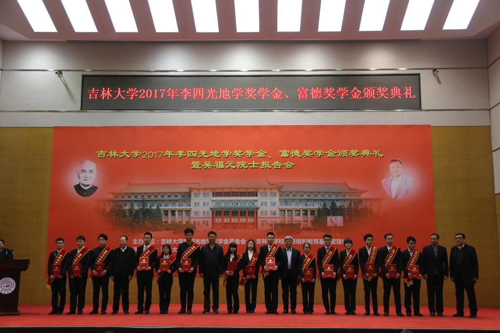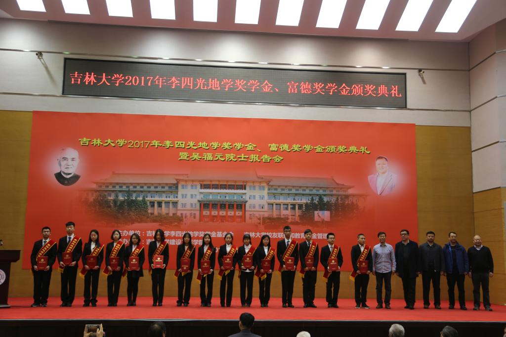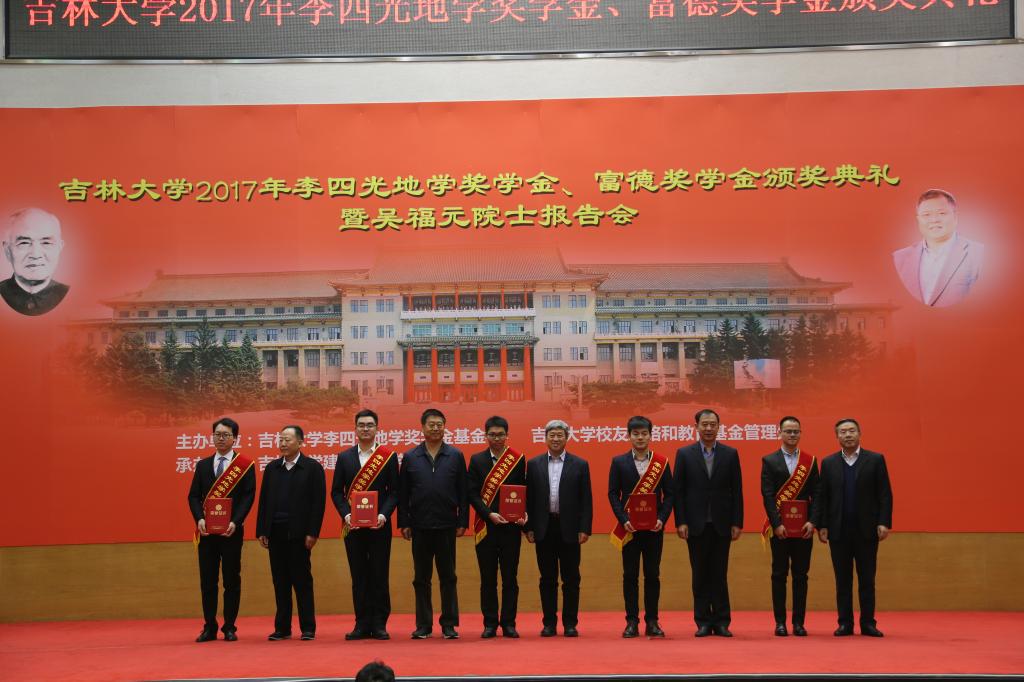 12月8日,巨乳自拍 2017年度李四光地学奖学金、富德奖学金颁奖典礼在中心校区东荣会议中心举行。巨乳自拍 研究生朱慧星,本科生韩子铭、邓贝奇、陈敬宜获得本年度李四光地学奖学金。本科生陈景川、王晨获得本年度富德奖学金。