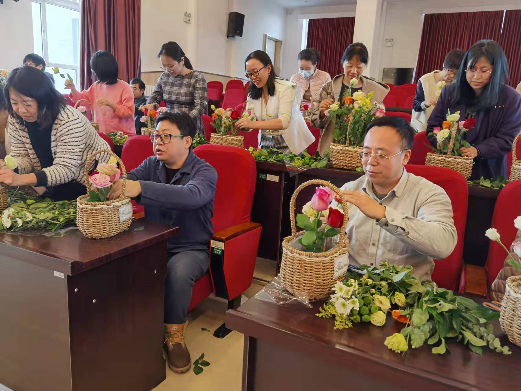 为庆祝建党一百周年,增强学院凝聚力,丰富广大教职工业余文化生活,增强教职工主人翁意识,营造和谐工作生活氛围,结合学院教职工意愿,学院工会组织全院教职工利用午休时间举办了“妙手生花”主题插花艺术体验活动。