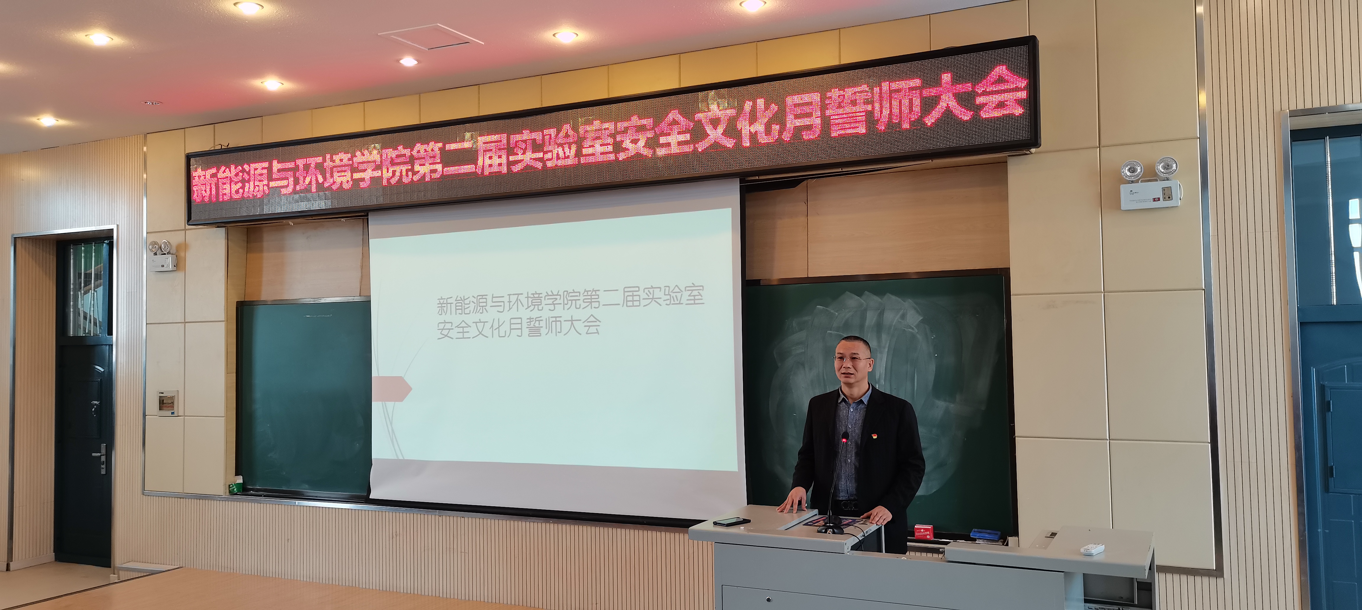“第二届实验室安全文化月”誓师大会在理化楼一阶会议室隆重召开。党委书记汪祥松、院长许天福(通过视频方式)及全院所有教师和各实验负责人等出席大会,大会由行政副院长徐军主持,本次会议是线上和线下同时进行,学院的部分学生代表也通过视频方式参加了此次会议。