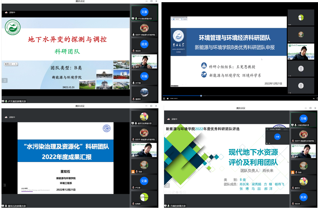 会议上半程,各科研团队负责人就团队的科学研究成果、教师人才培养和引进、学科发展贡献、研究生培养等几个方面进行了汇报。经评委投票进行排序,评选出优秀A类科研团队一等奖一组:污染场地控制与修复科研团队;二等奖一组:地下新能源开发的渗流和环境问题研究科研团队;三等奖一组:地下水与环境演变与调控科研团队。评选出优秀B类科研团队一等奖一组:环境管理与环境经济科研团队;二等奖一组:水污染治理与资源化科研团队;三等奖两组:地下水异变的探测与调控科研团队、现代地下水资源评价及利用科研团队。