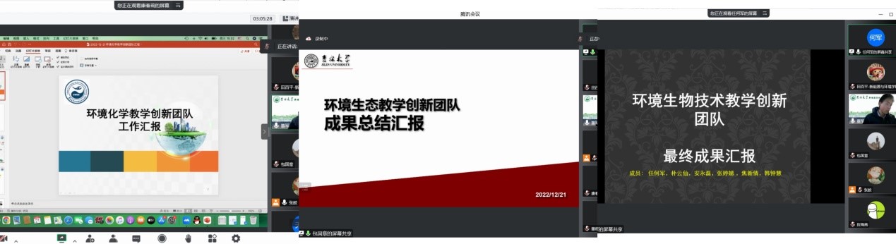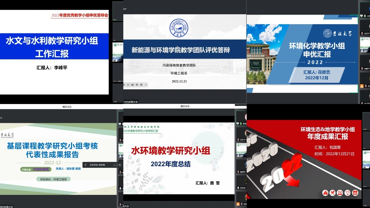 会议下半程由各教学小组和团队负责人以及教师个人就教学工作开展情况、取得成果、工作思路、未来计划等几个方面进行汇报答辩。经评委排序投票,评选出优秀“教学研究小组”六组,评选结果为:一等奖一组:环境化学教学研究小组;二等奖两组:环境生态与地学教学研究小组、水文与水利教学研究小组;三等奖三组:污染控制教学研究小组、水环境教学研究小组、场地修复教学研究小组;确定:环境化学教学创新团队、环境生态教学创新团队和环境生物技术教学创新团队通过最终成果考核;确定2022年度“青年教师提升计划(教学标兵)”六人通过中期考核。