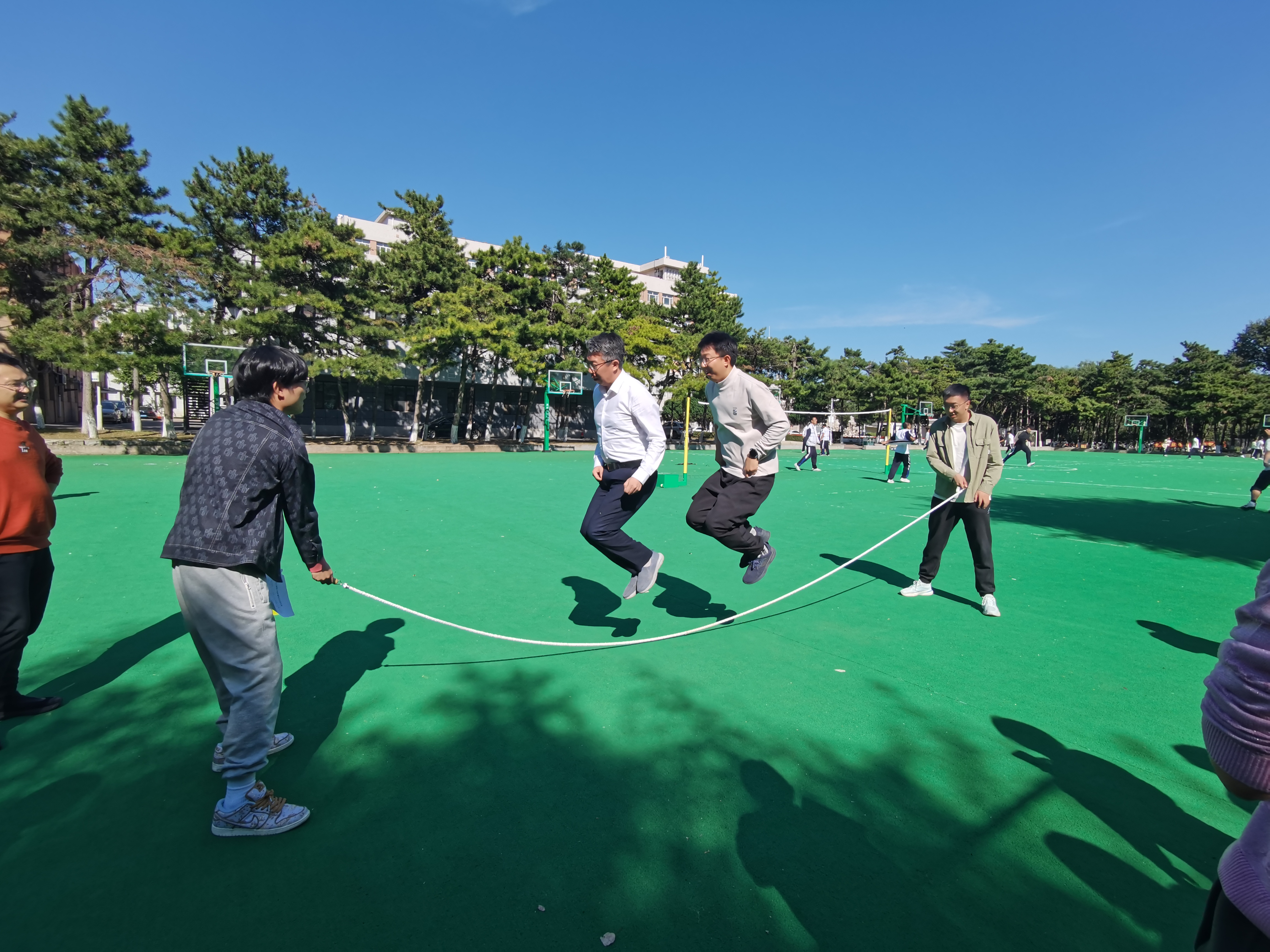 为庆祝中华人民共和国成立75周年,丰富教职工文化生活。9月27日中午,巨乳自拍 工会举办了迎国庆趣味运动会,用行动表达对祖国的热爱和祝福。工会主席徐军副院长、卞建民副院长出席了活动。30余名教职工参加了活动。