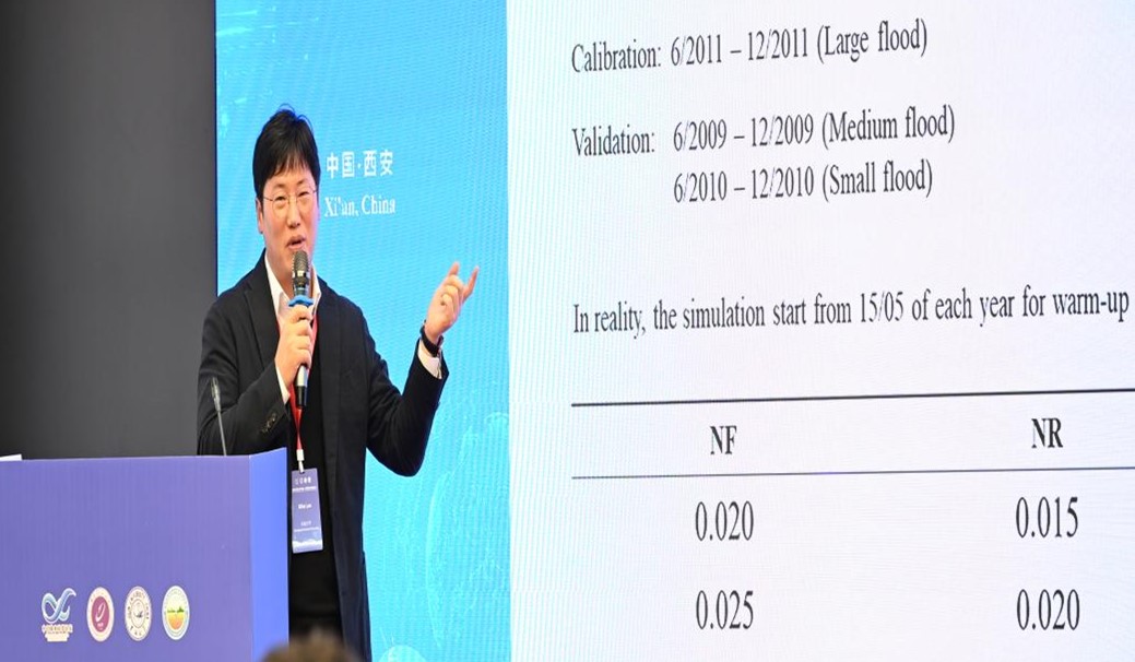 冯右骖副教授就“数据缺乏地区的数字孪生流域建设”作报告,西安理工大学王添副教授就“高效高分辨率城市水环境过程数值模拟及其应用研究”作报告,启明大学Dong Kook Woo副教授就“土壤碳氮受生态水文过程的动态影响”作报告,浪潮智慧城市科技有限公司魏永森总经理就“数字济南城市防汛监测预警平台建设经验分享”作报告。
