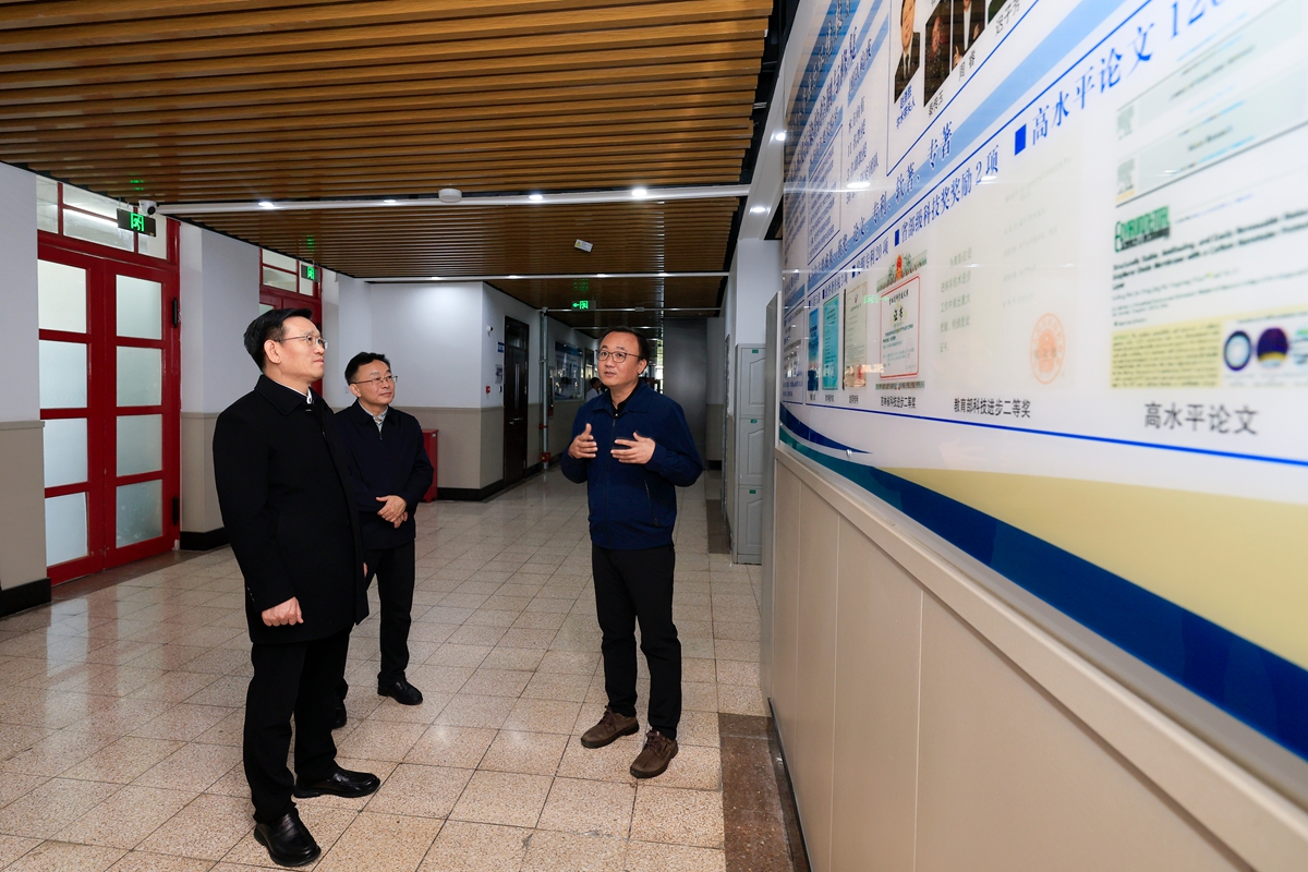 调研,聚焦学科建设、人才培养、科研创新和成果转化等方面,深入了解学院建设情况,指导推动学院高质量发展。他强调,要深入学习贯彻习近平总书记关于教育的重要论述,坚持党的全面领导,紧密对接国家战略需求,发挥学校多学科交叉融合优势,协同整合校内外资源,坚持教育科技人才一体发展,为建设教育强国、科技强国、人才强国贡献力量。