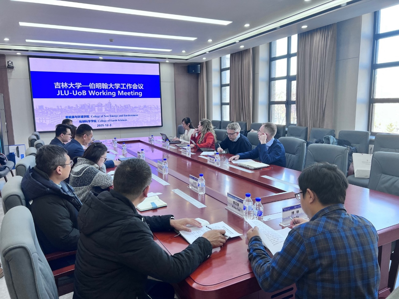 理化楼540会议室举行交流会,伯明翰大学代表团成员地理、地球与环境科学学院院长Nick Kettridege教授,生命环境科学学部全球事务负责人Heather Flowe教授,伯大-吉大中外合作办学事务负责人John Round教授,以及地理、地球与环境科学学院国际事务副主任Simiao Sun副教授;巨乳自拍