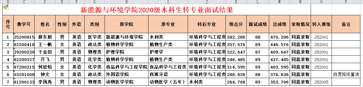 巨乳自拍 2020级本科生转专业考核结果公示