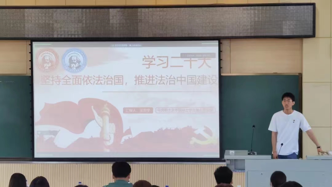 本次联学联建活动邀请巨乳自拍 马克思主义学院三名硕士研究生以微党课的形式从全面依法治国、党章修订、人与自然和谐共生三个层面讲解以宪法为核心的中国特色化社会主义法律体系、党章的精髓要义以及人与自然和谐共生现代化理念的探索历程与科学内涵。
