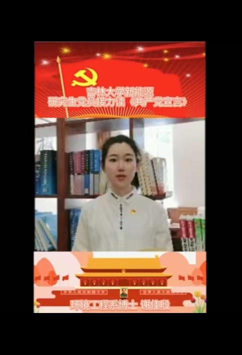 庆祝中国共产党建党百年之际,吉大新能源学子接力读宣言,追溯信仰之源,在重温经典中感悟真理的力量,感受思想伟大,思考中国共产党为什么“能”,马克思主义为什么“行”,中国特色社会主义为什么“好”。