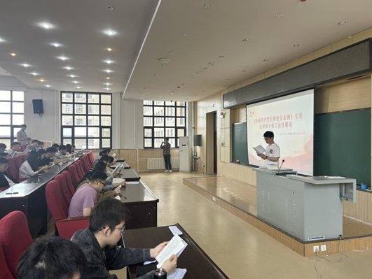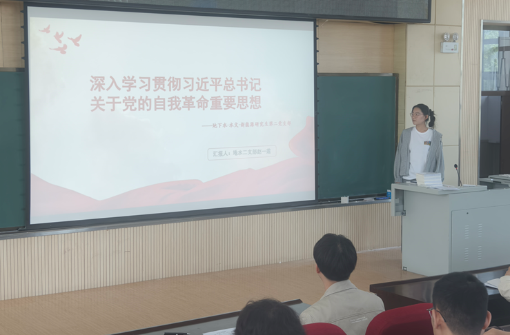 地下水-水文-新能源研究生第二党支部书记赵一莲,以“深入学习贯彻习近平总书记关于党的自我革命重要思想”为主题讲授党课。此次党课活动,不仅加深了全体党员对习近平总书记关于党的自我革命重要思想的理解,而且激发了大家在新时代新征程上持续奋斗的决心。