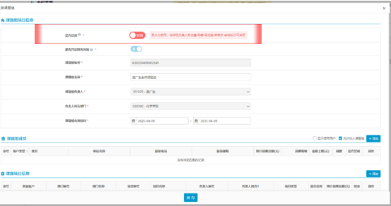 5.按照注册课题组页面要求,填写课题组负责人、课题组成员、可用于结算的课题项目等信息,保存后完成注册申请。